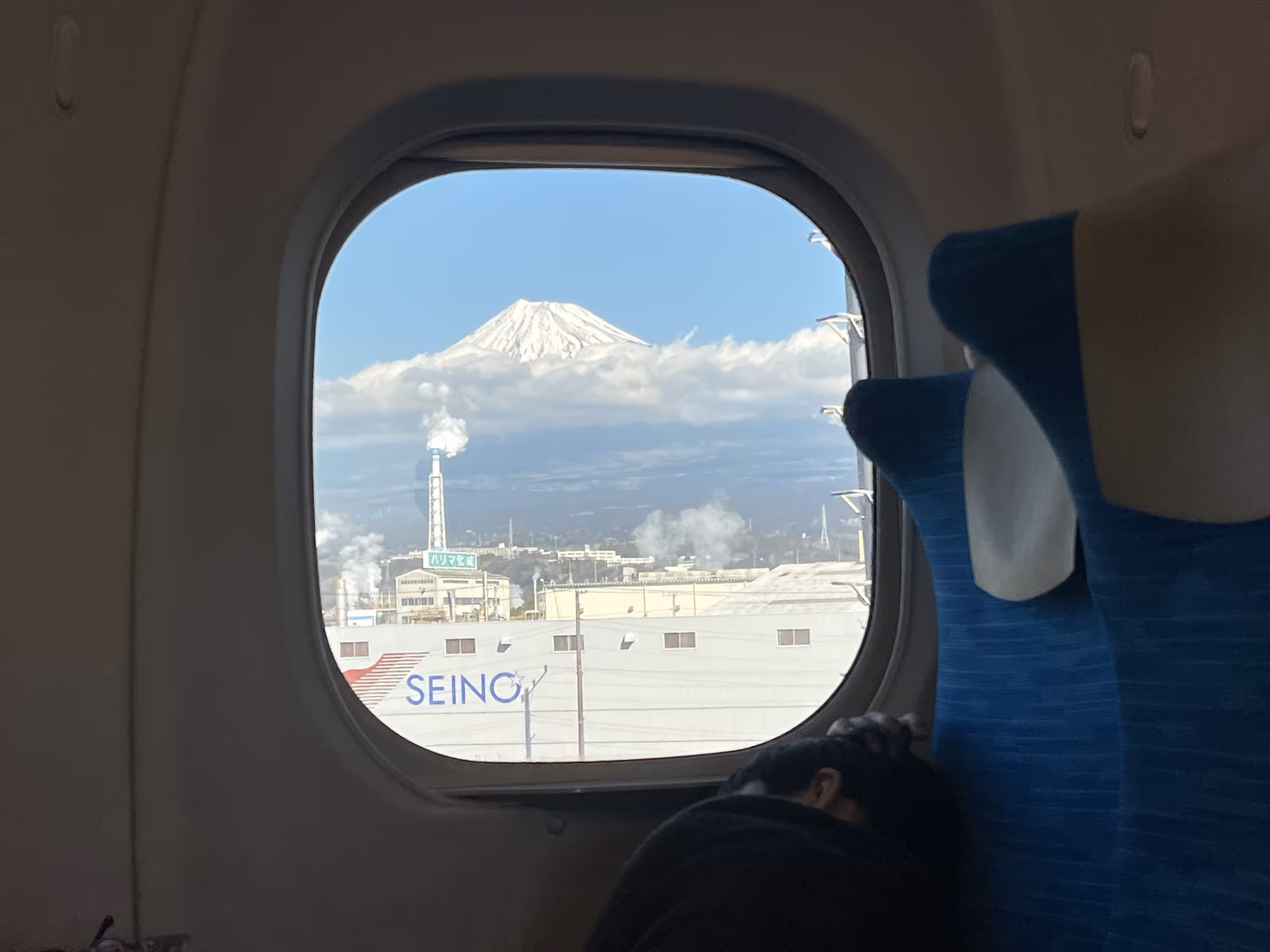 富士山を車でじっくり眺めたいという狙いだけど、やっぱり新幹線は乗りたい。 中国の高速鉄道と乗り比べがしたかった。 東海道新幹線は海を沿って建てられたから、カーブとトンネルは結構多い。 でも思ったより揺れが少なく、結構穏やかで、窓の外を覗かないとカーブに気付きづらい。 車両もとても静かで乗り心地がよかった。 都内の電車と同じように、線路のすぐ近くに家とかがたてられるのも興味深い。